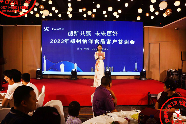 2023年8月7日,创新共赢 未来更好---2023郑州怡洋食品客户答谢会,远道而来的嘉宾一起相聚中原腹地 绿城郑州,一起共襄盛举 共赴盛宴,精彩答谢节目唱出一个满堂彩!(一个积极开拓、快速发展的团队,都是谦虚、务实、厚道又有韧性的,冲锋市场酸甜苦辣的不易和台前幕后的勇于担当,一杯敬明天,一杯敬过往,都随着4杯酒一起干了! 各行百业都要在疗伤中洗牌,制造成本与销售价格会更加透明,利润会更加微薄。传统行业,渠道的整合,产品的质量,服务的升级,诚信的坚守,这是未来几年不被淘汰的四大法宝...)甲乙丙丁,创造更多圆满成功!郑州开业庆典礼仪会议演出活动策划,请您首选河南庆典演出著名品牌----甲乙丙丁!郑州甲乙丙丁文化传播有限公司 0371-甲乙5503丙丁8866 138甲乙3711丙丁5577